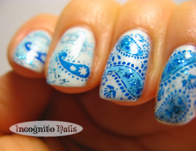 Then I stampes with gold the stars (Bunny Nails HD-E) and with black the nativity scene on the middle finger and the rest of it on the thumb nail. The three cute magi are walking towards the nativity set on my ring and pinky fingers. All stamping images are from the new plates by Bunny Nails HD-F and HD-E.